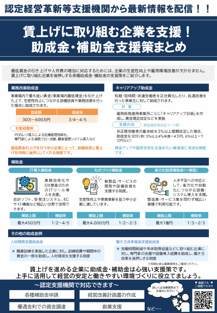 賃上げに取り組む企業を支援! ~助成金・補助金支援策まとめ~