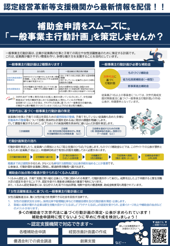補助金申請をスムーズに ~「一般事業主行動計画」を策定しませんか?