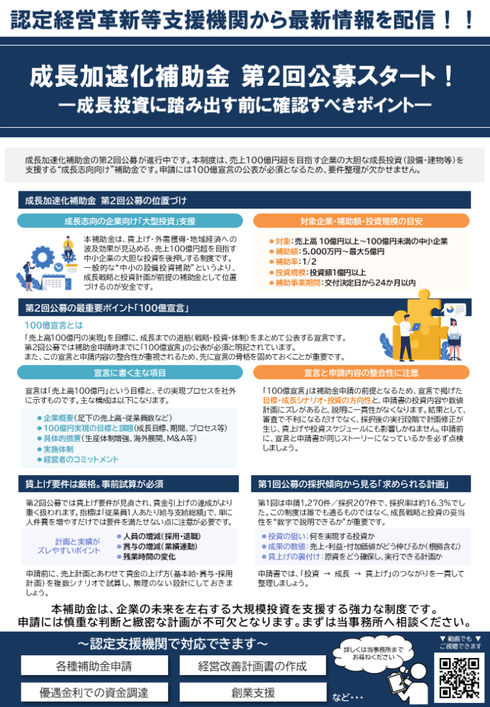 成長加速化補助金 第2回公募スタート! ~成長投資に踏み出す前に確認すべきポイント~